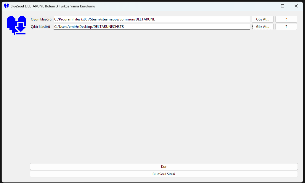 - C:\Program Files (x86)\Steam\steamapps\common\DELTARUNE\ konumunda olmalı.